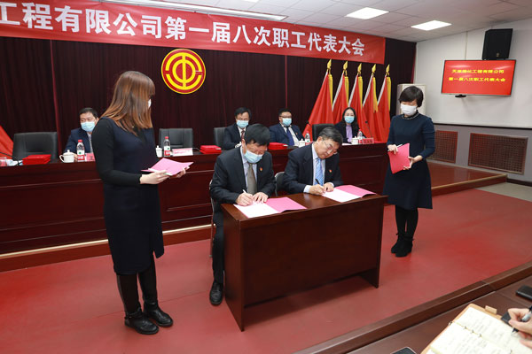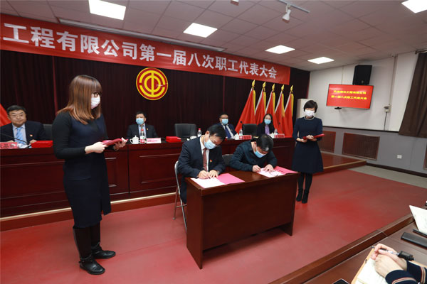 會上,勞資雙方簽訂了《工資集體協(xié)商協(xié)議書》和《公司女職工權(quán)益保護(hù)專項集體合同》,總經(jīng)理與行政部門代表簽署了《目標(biāo)責(zé)任書》。