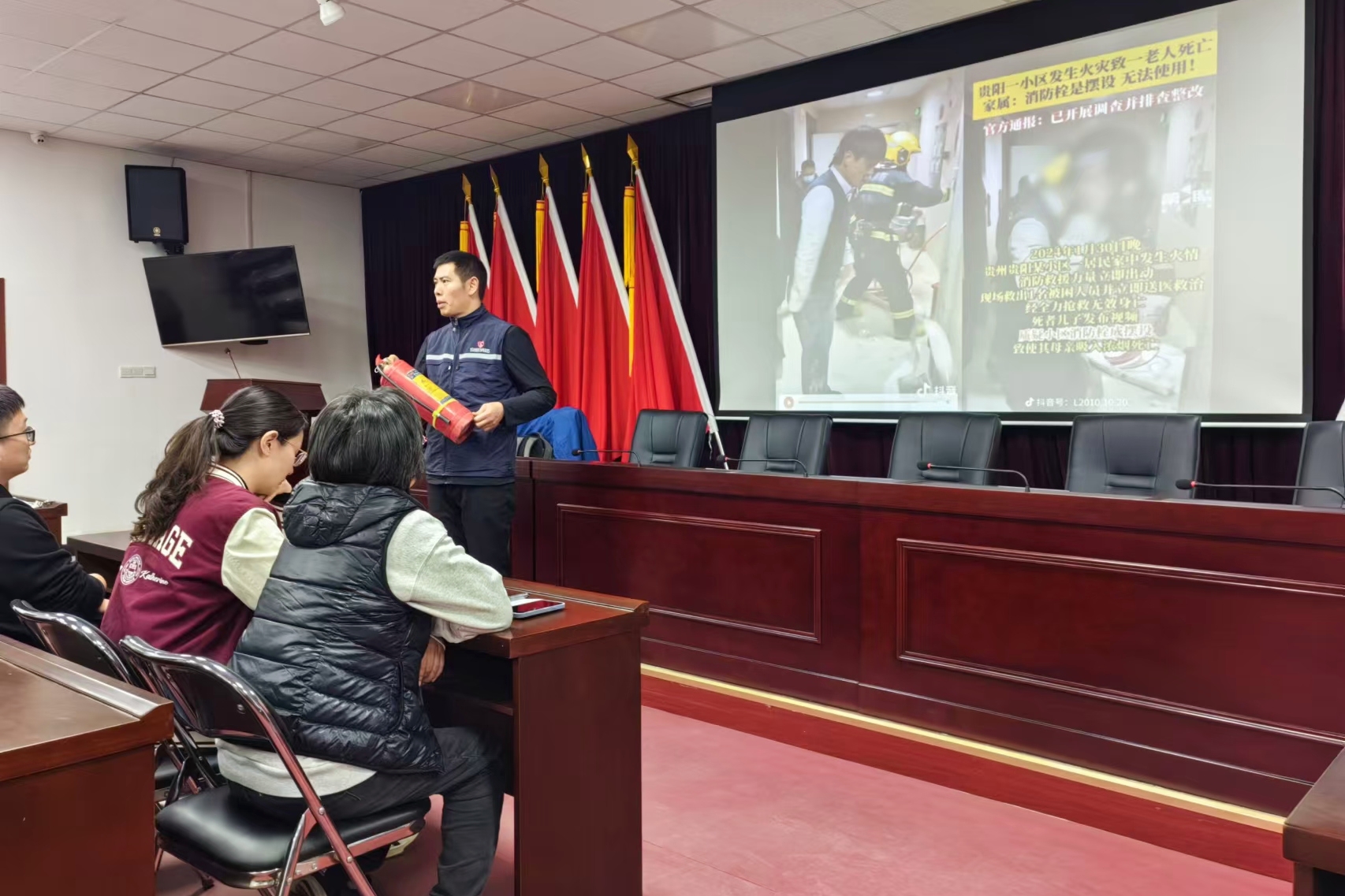 講座中,彭老師分別就安全生產(chǎn)基礎(chǔ)知識(shí)、滅火器材的使用、日常生活火災(zāi)案例、辦公室用電注意事項(xiàng)等方面進(jìn)行了生動(dòng)講解,并指導(dǎo)大家正確使用消防器材,提醒大家要高度重視消防安全,定期檢查消防設(shè)施設(shè)備,積極主動(dòng)做好日常生活消防安全工作。