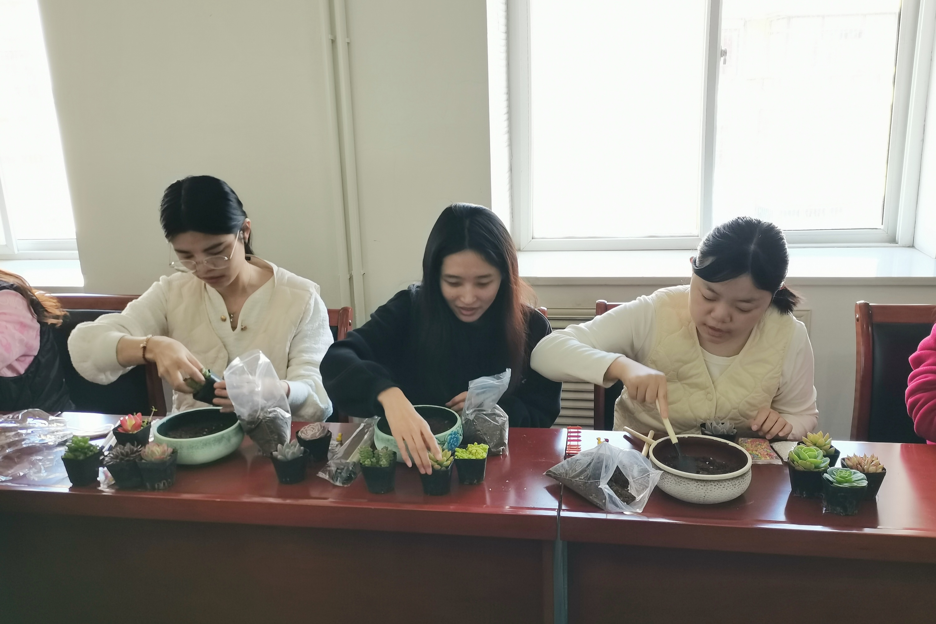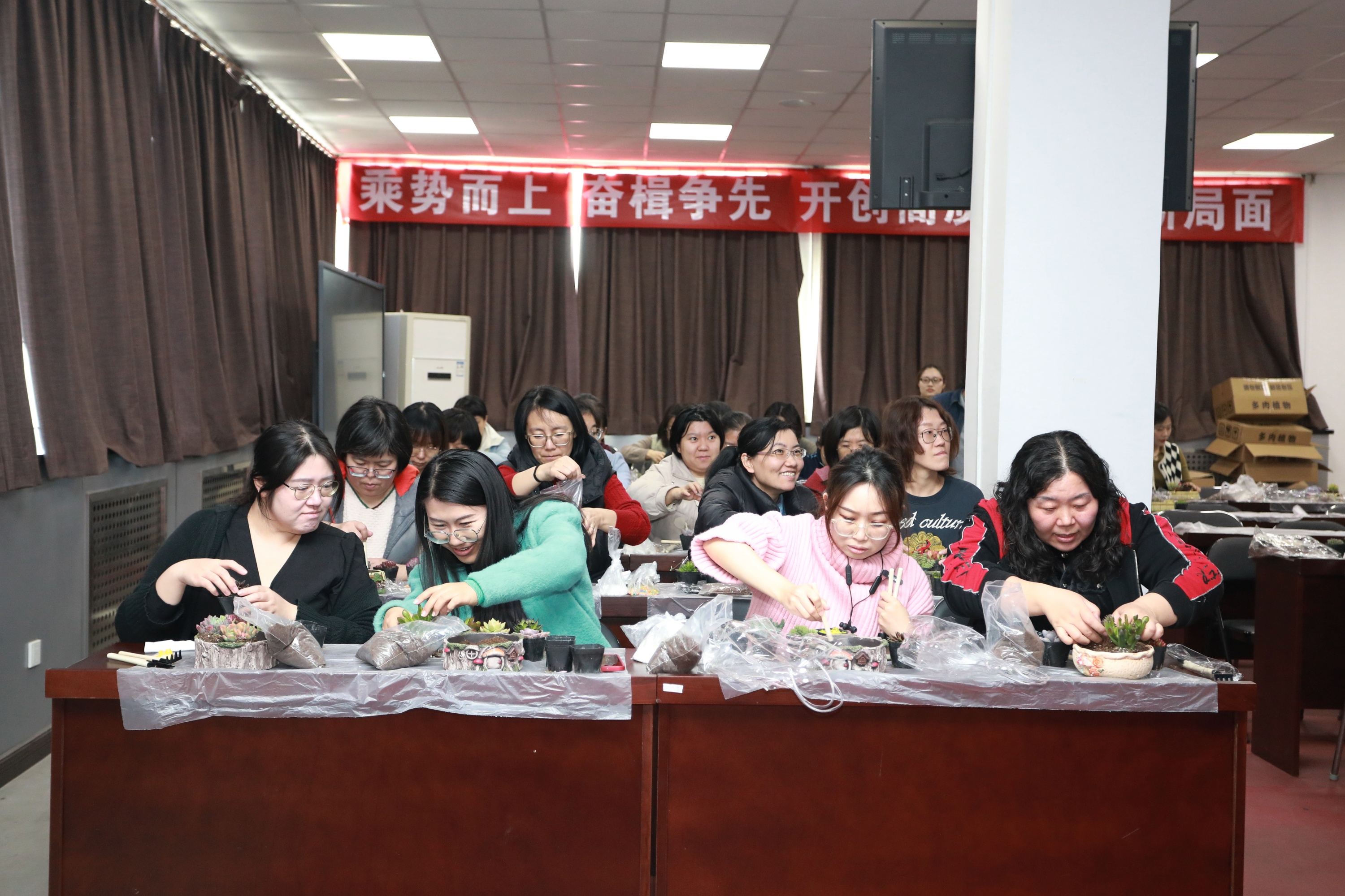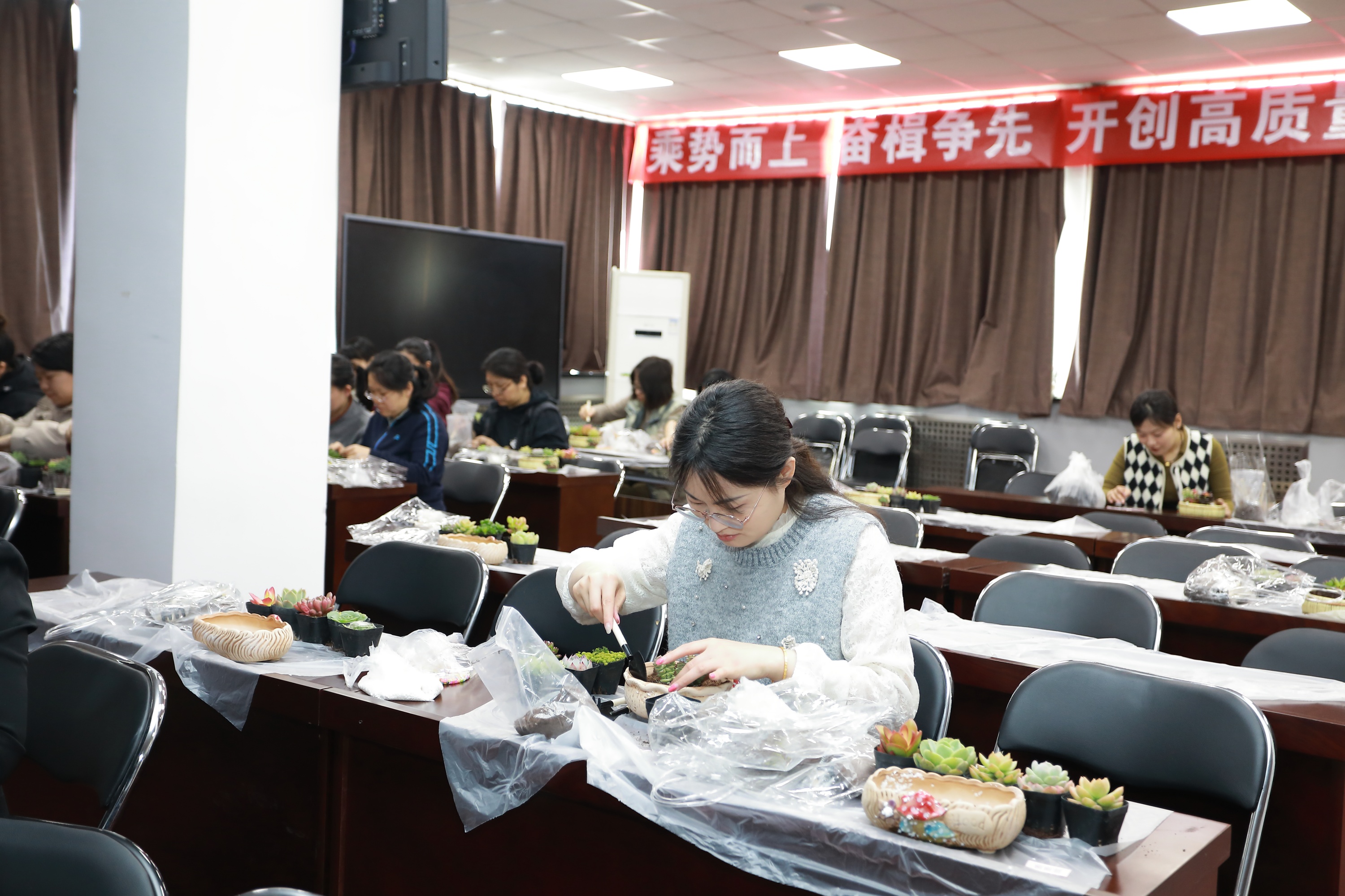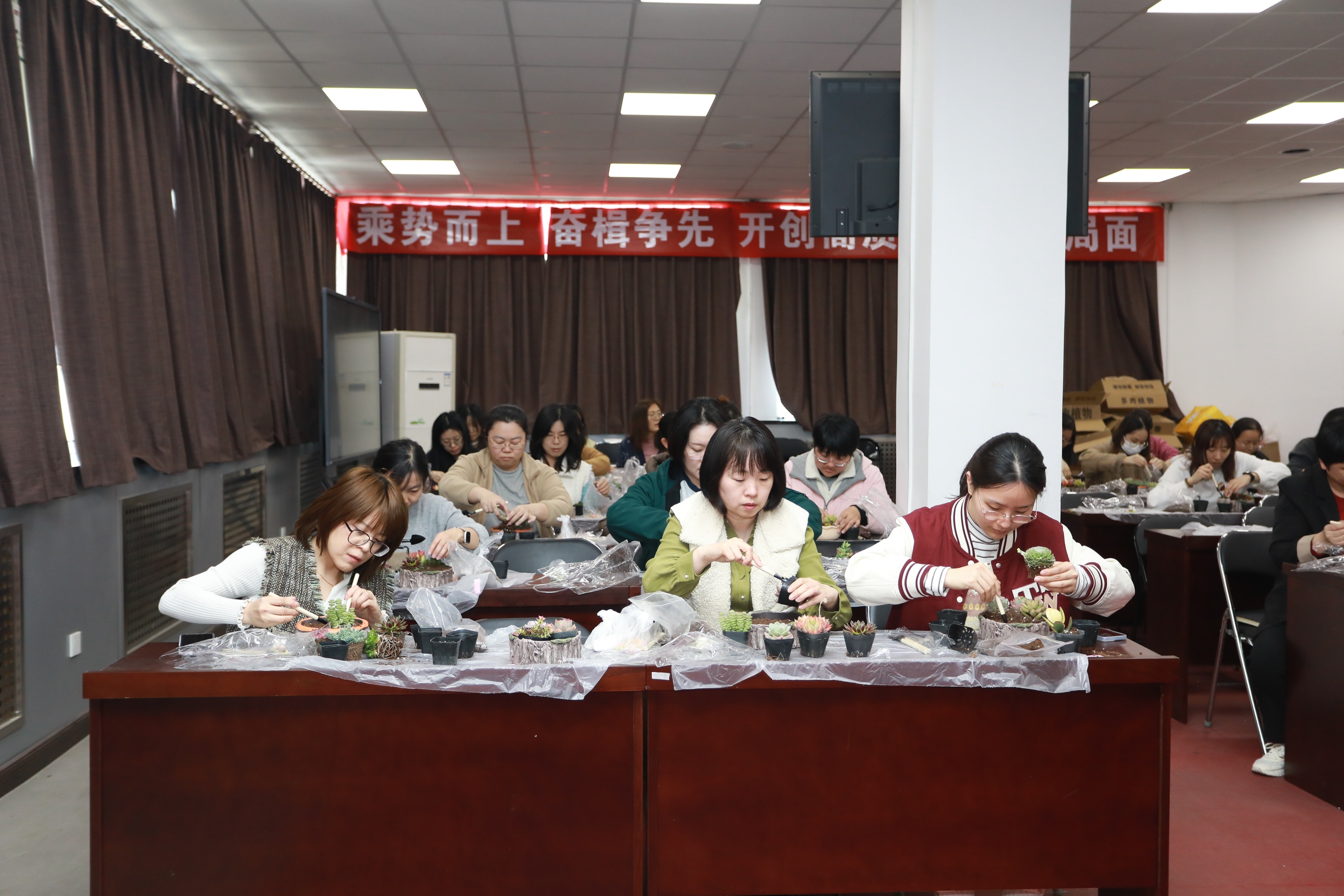 “綠意映紅妝匠心塑春光”——渤化工程 “三八節(jié)”多肉盆栽DIY 2025-03-07 16:35:57 Your browser is not supported 為慶祝第115個(gè)“三八”國(guó)際勞動(dòng)?jì)D女節(jié),豐富女職工精神文化生活,倡導(dǎo)綠色健康生活理念,3月6日渤化工程工會(huì)組織開(kāi)展了“綠意映紅妝匠心塑春光”多肉盆栽DIY主題活動(dòng),百余名女職工齊聚一堂,在春日暖陽(yáng)中感受指尖藝術(shù)與自然之美的融合。 活動(dòng)伊始,專業(yè)園藝?yán)蠋熗ㄟ^(guò)趣味問(wèn)答和案例分享,向女職工們普及了多肉植物的品種特性、養(yǎng)護(hù)技巧及創(chuàng)意盆栽設(shè)計(jì)理念。從土壤配比到澆水頻率,從色彩搭配到空間布局,生動(dòng)實(shí)用的講解讓在場(chǎng)員工躍躍欲試。在DIY環(huán)節(jié),大家化身“園藝設(shè)計(jì)師”,精心挑選吉娃蓮、虹之玉、生石花等萌態(tài)多肉,搭配多彩陶盆、卡通擺件等素材,有的組合出“沙漠花園”的野趣,有的打造出“童話森林”的治愈,將想象力注入方寸綠意之間。 女職工們紛紛表示,此次活動(dòng)不僅讓她們掌握了園藝知識(shí),更體驗(yàn)到動(dòng)手創(chuàng)作的成就感,親手制作盆栽既能減壓又能裝點(diǎn)辦公室,非常有意義。渤化工程工會(huì)以“三八節(jié)”為契機(jī),通過(guò)特色文化活動(dòng)展現(xiàn)女性風(fēng)采,倡導(dǎo)低碳環(huán)保理念,助力打造幸福企業(yè)。