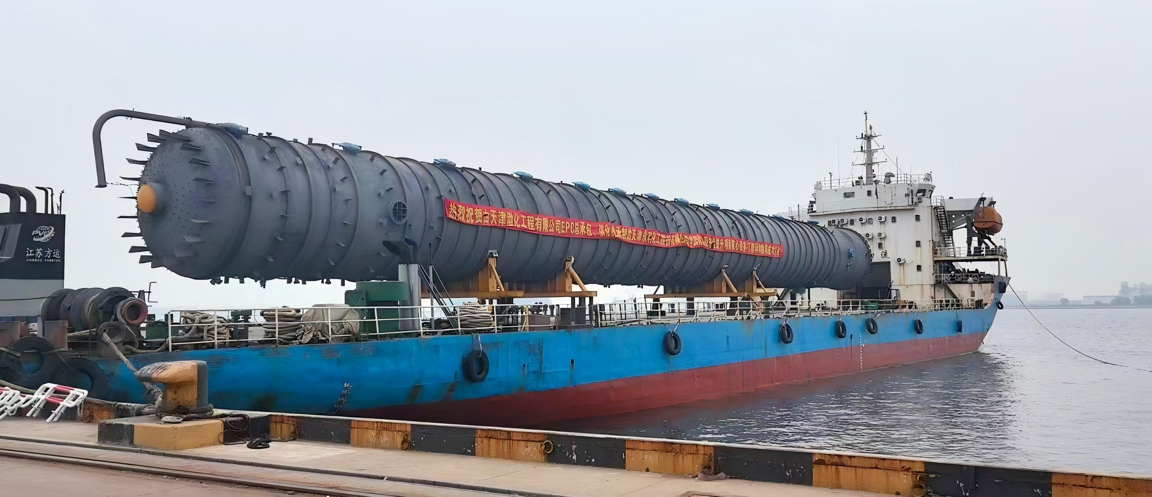 5點(diǎn)36分,在渤化永利、渤化工程、中化六建、大沽物流的協(xié)同配合、共同努力下,凈重達(dá)442噸的異構(gòu)物塔在特種運(yùn)輸車的緩緩牽引下,平穩(wěn)運(yùn)抵施工現(xiàn)場(chǎng)。這臺(tái)“龐然大物”的成功進(jìn)場(chǎng),不僅是項(xiàng)目建設(shè)的一個(gè)重要里程碑,也體現(xiàn)了項(xiàng)目團(tuán)隊(duì)在設(shè)備運(yùn)輸和安裝方面的精心策劃與高效執(zhí)行,為后續(xù)順利施工、年底全面竣工按下了“加速鍵”。