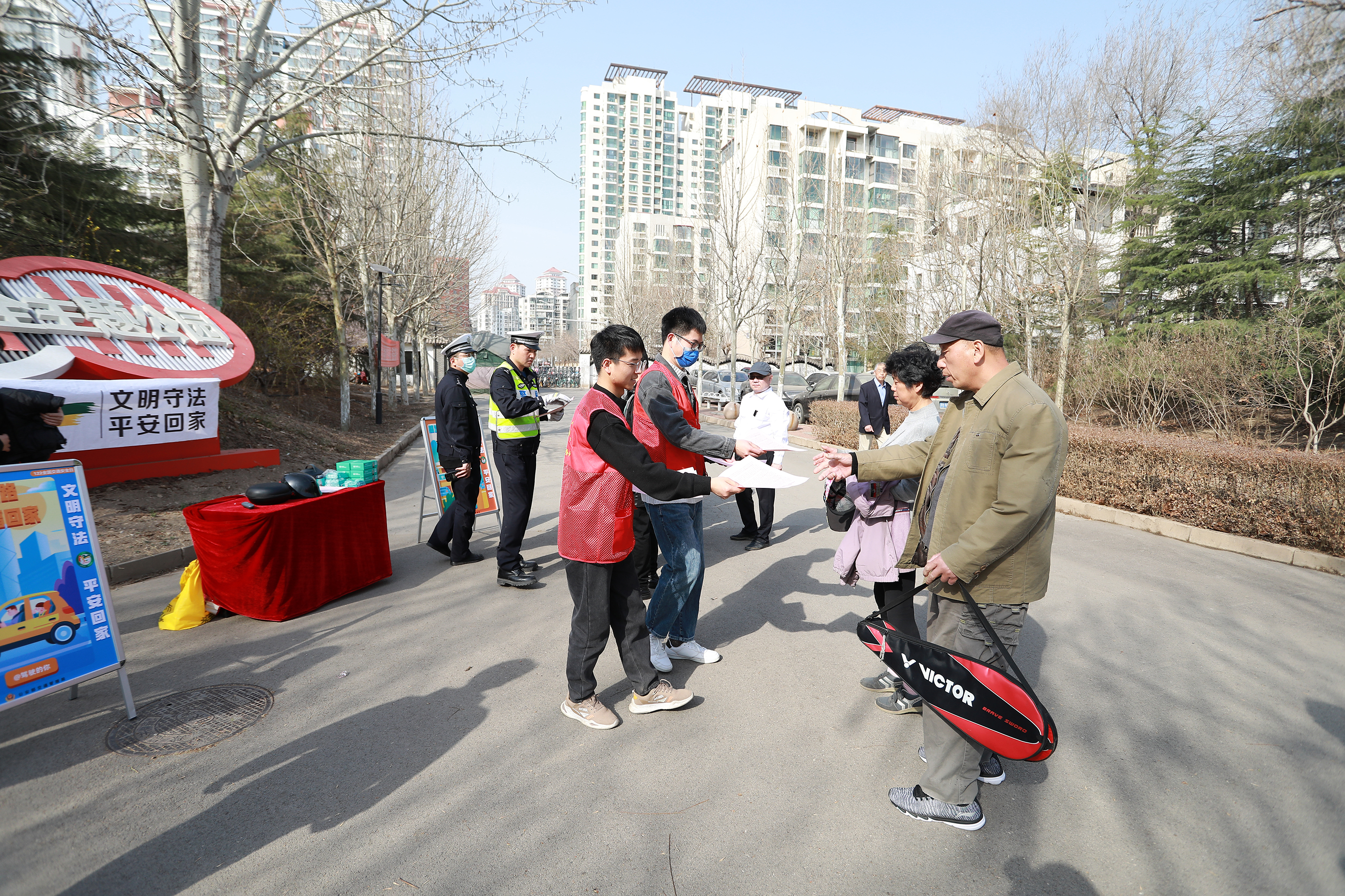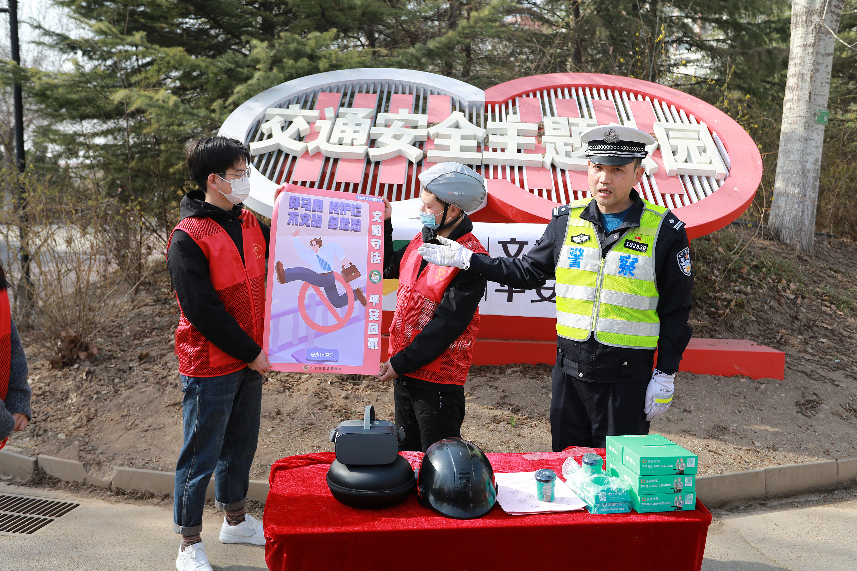 3月14日,渤化工程黨委聯(lián)合南開交警支隊(duì)白堤路大隊(duì)、滴滴代駕天津同壹心司機(jī)服務(wù)中心,開展“文明守法,平安回家”志愿服務(wù)行動(dòng)?;顒?dòng)現(xiàn)場(chǎng),民警通過(guò)演示講解、利用VR眼鏡等多種形式向公園市民群眾、代駕司機(jī)進(jìn)行了交通安全宣傳。志愿者們向過(guò)往市民群眾發(fā)放了交通安全宣傳資料,呼吁大家日常出行應(yīng)當(dāng)遵守法律法規(guī),做到守法出行、安全出行、文明出行。